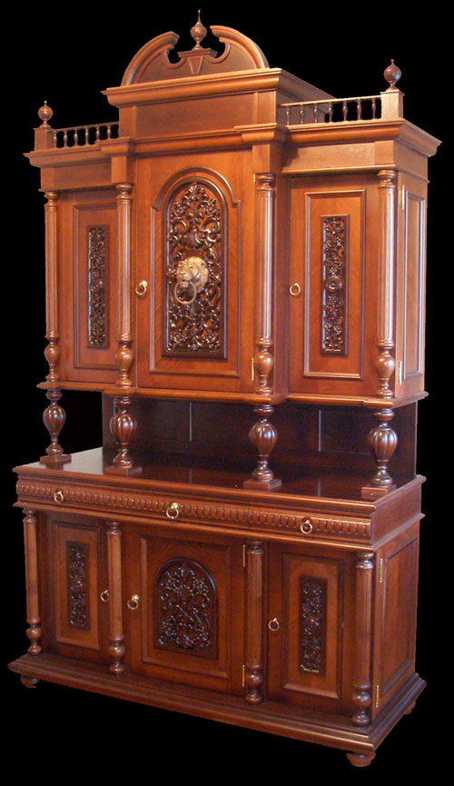 Материал: массив бука, шпон, ручная резьба, латунь, литьё, лак.